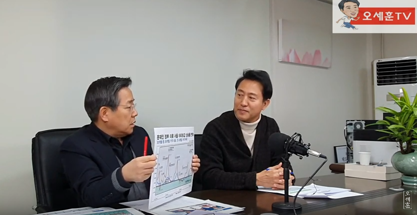 오 전 시장은 이날 방송에서 김헌동 경제정의실천시민연합 부동산건설개혁 본부장과 함께 부동산 가격 폭등문제에 대해 나눴다.