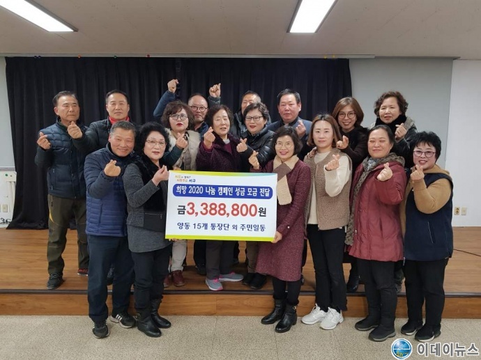 광주 서구 양동 통장단(회장 채영숙)은 지난 22일 양동 주민센터에 희망 2020나눔 캠페인 성금 모금 3백3십여만원을 전달했다.