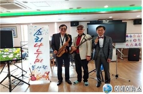재능기부 봉사 주인공은 송기수, 류승진, 백종남씨로 음악봉사단 “소리나누미”에서 색소폰, 기타, 하모니카 등 악기로 노인들을 즐겁게 해드리고 있는데 연주솜씨도 수준급이다.