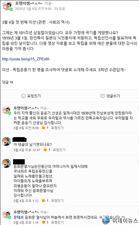 각 학급별로 학생과 학부모 전화 상담을 통해 학생 건강상태 등을 파악하고 온라인 학습방을 개설해 학생의 학습지도 및 독서, 건강, 생활습관 등 기초·기본학습을 충실히 지원하고 있다.