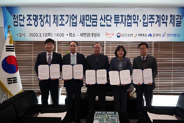새만금개발청은 지난 12일 LED 조명제품 전문기업인 세미와 사물인터넷(IoT)을 활용한 태양광 가로등 제조시설 건립에 관한 투자협약과 입주계약을 동시 체결했다고 밝혔다. 이날 투자협약과 동시에 입주계약을 체결할 수 있도록 사전에 관계기관과 협의를 완료해 빠른 공장 착공을 지원했다.
