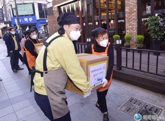 오월어머니집(관장 이명자)과 모앤미라클의원(원장 강효)은 16일 오전 광주주먹밥 1호 전문점인 동구 밥콘서트에서 주먹밥 도시락 518개를 만들어 코로나19 지역거점병원으로 지정돼 24시간 비상체제로 운영되고 있는 계명대학교 동산의료원에 전달했다.