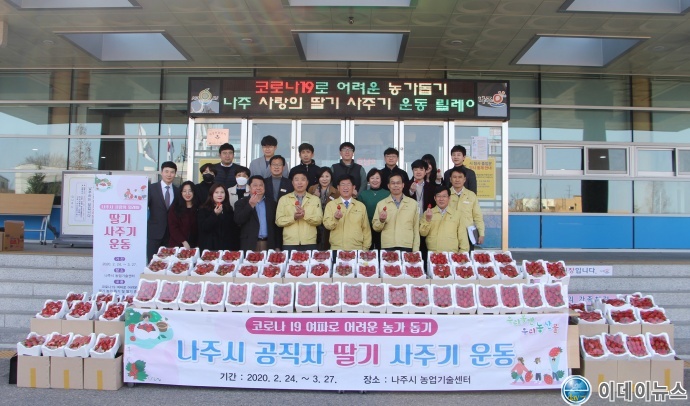 지난 달 20일 강인규 나주시장의 남평읍 딸기 농가 격려 방문을 시작으로 24일부터 3월 6일까지 시청(1100박스)을 비롯해 농협중앙회(200박스), 동신대학교(227박스), 나주소방서(211박스), 한전나주지사(112박스) 등 지역 유관기관이 참여했다.