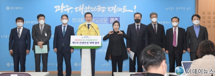 이용섭 광주광역시장은 19일 오후 2시 시청 브리핑룸에서 기자회견을 갖고 ‘코로나19로부터 지역경제지키기 제2차대책’으로 시민 대다수에게 혜택이 돌아가는 공공요금 일제 동결 등 3대 민생안정대책을 발표했다.