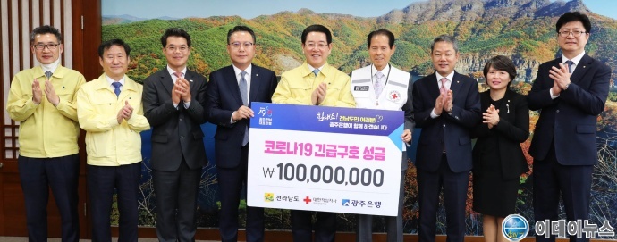 전라남도는 19일 광주은행(은행장 송종욱)으로부터 ‘코로나19’ 극복을 위한 성금 1억 원을 기탁받았다.