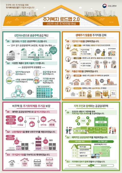 김현미 국토부 장관은 "진정한 주거복지는 정부와 지방자치단체가 함께하고, 정책이 청년ㆍ신혼부부ㆍ고령자 등 개개인의 삶 속에서 체감돼 지역 주민에게 받아들여 질 때 완성된다"면서 "주거복지로드맵 2.0을 통해 국민 피부에 와 닿는 지원을 촘촘히 제공해 선진적인 주거안전망을 완성하는데 역량을 쏟고, 누구나 집 걱정 없이 살 수 있는 사회를 만들어 나가겠다"고 밝혔다.