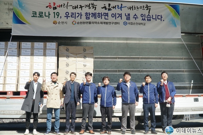 순천천연물의약소재개발연구센터(공동 이사장 순천시장 허석, 순천대학교 총장 고영진)가 코로나19 확산으로 어려움을 겪고 있는 대구․경북의 지역민을 돕기 위해 위문물품을 지원했다.