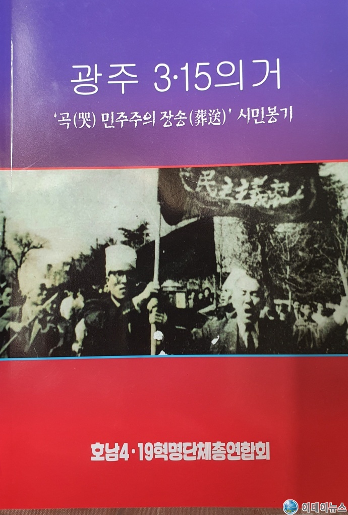 ‘곡 민주주의 장송’ 시민봉기가 광주에서 1960년 3월 15일 12시 45분에 정확히 군중에 의해 장엄하게 집행된 이후 마치 영호남이 짜여 진 각본 속에서 행동하듯 2시간 후인 1960년 3월 15일 14시 무렵에 마산에서 군중봉기가 있었던 게 역사적 진실이라는 것.