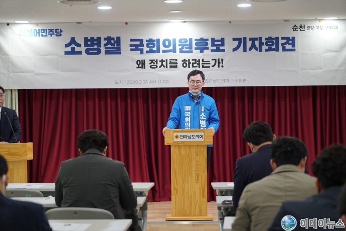 소병철 더불어민주당 순천·광양·곡성·구례(갑) 후보는 오늘 오전 11시, 전남도의회 브리핑룸에서 ‘왜 정치를 하려는가?’를 주제로 기자회견을 가졌다.
