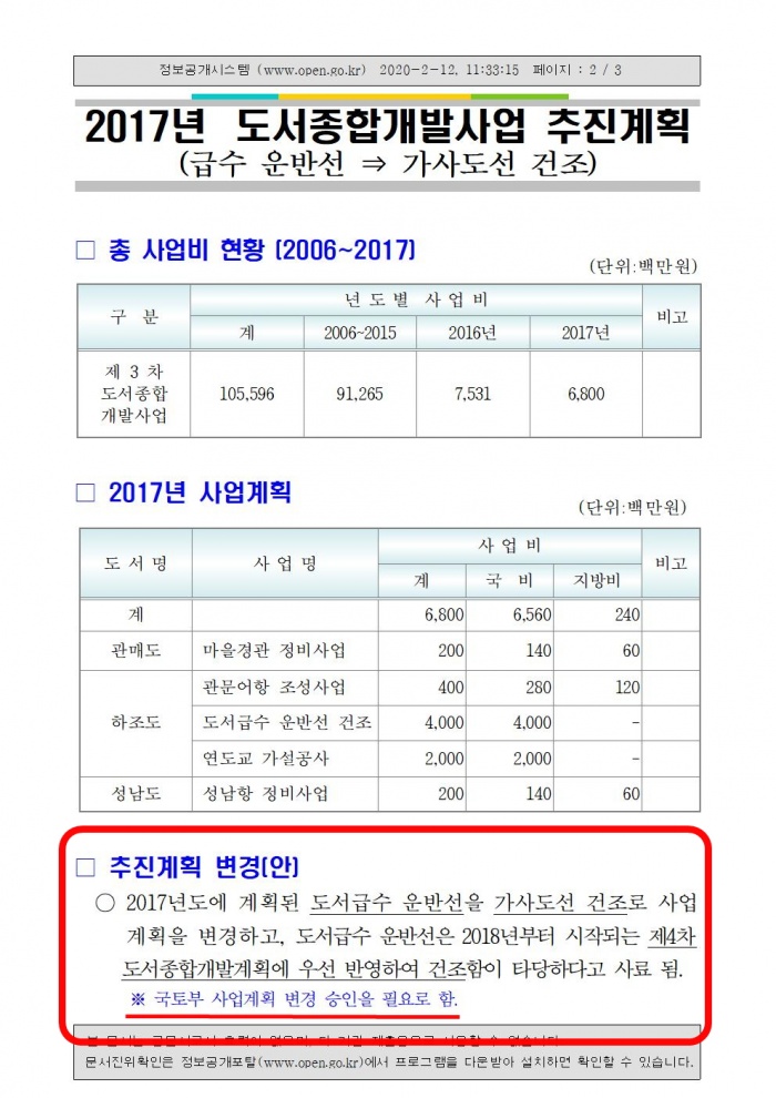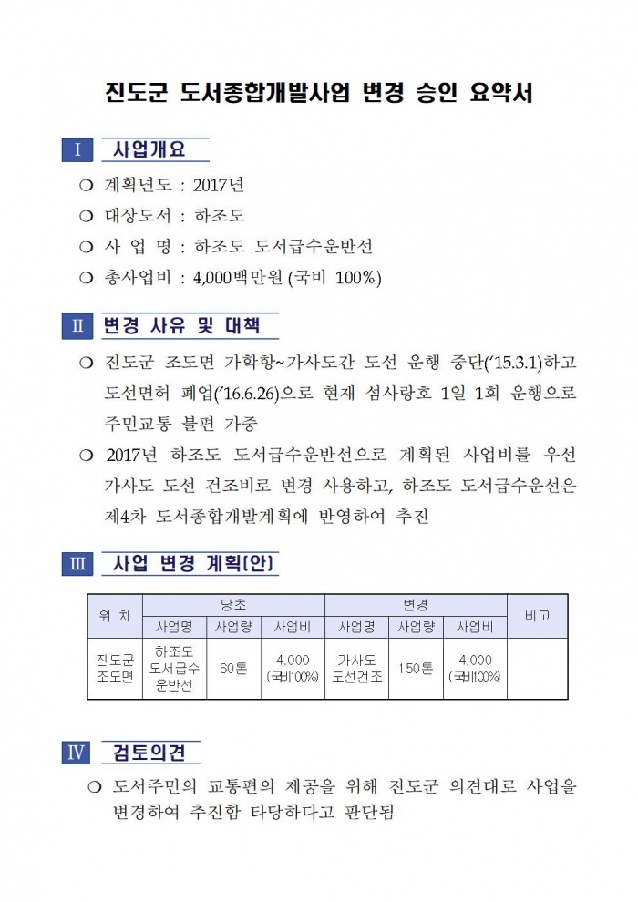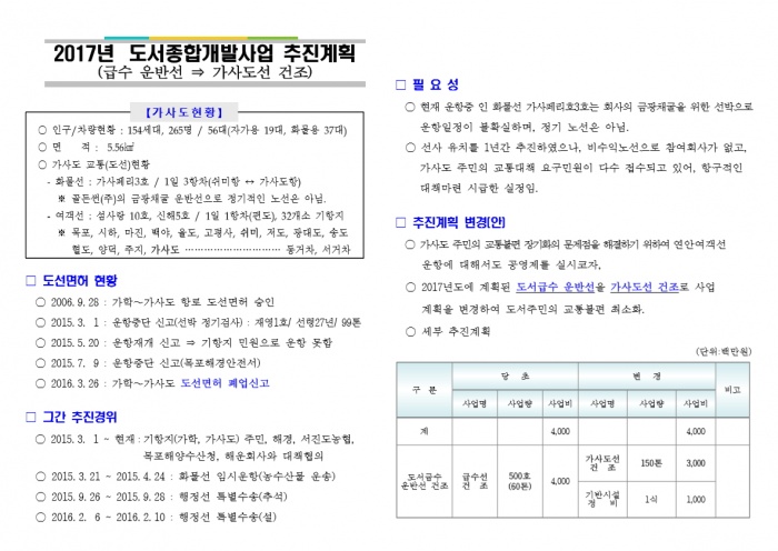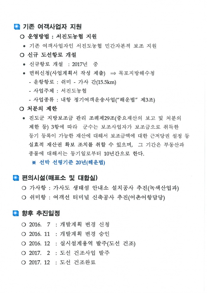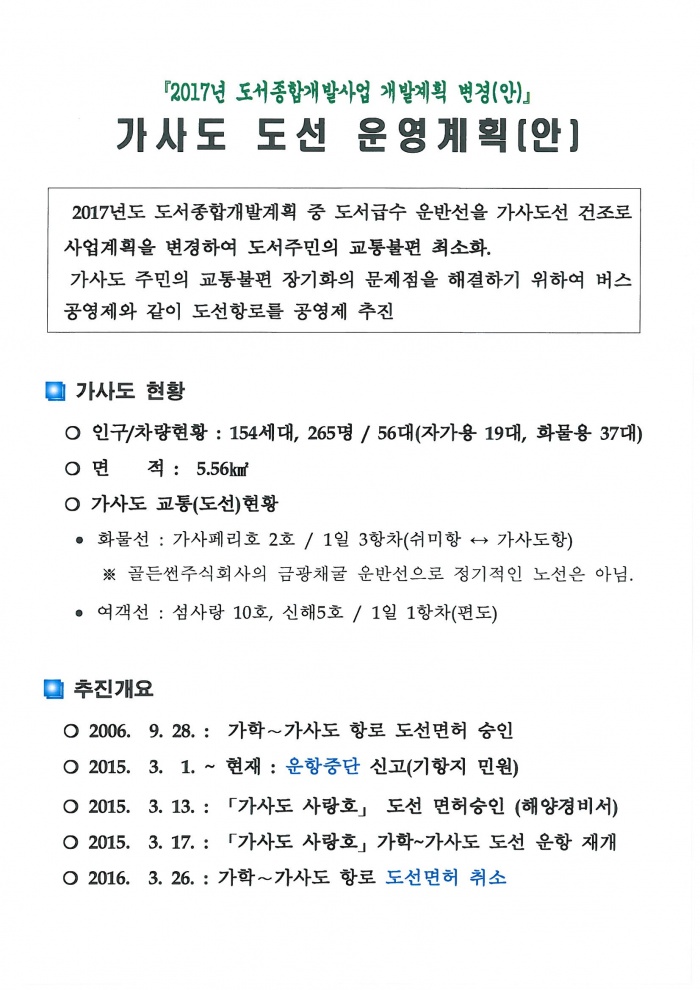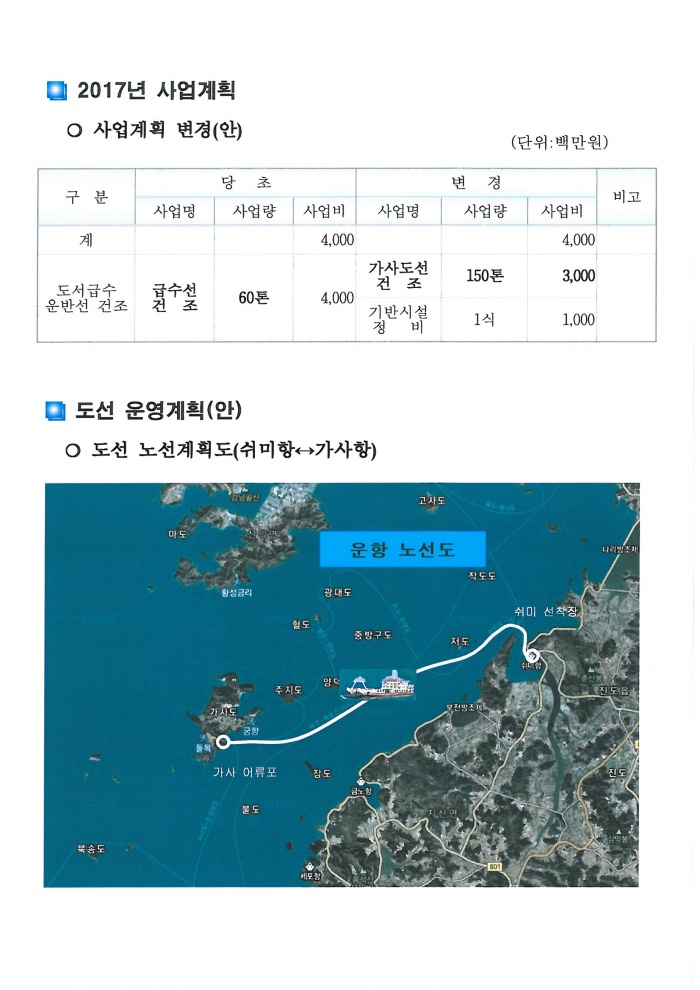 급수선 → 가사도선 사업변경 관련, 국토부 공개 문서 1