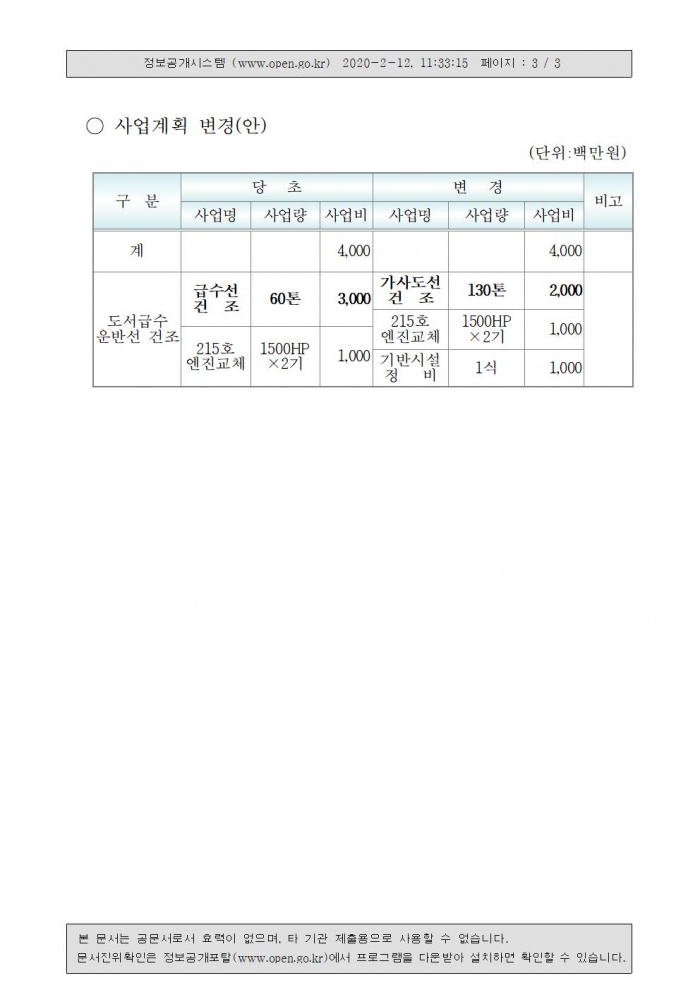 → 가사도선 건조' 관련 내용이다. 추진계획 변경을 검토하면서 내부적으로