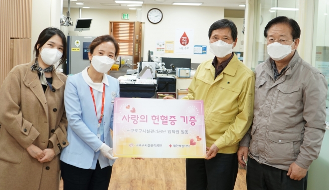 구로구시설관리공단(이사장 유영환)은 지난 23일 코로나19 위기 극복에 동참하기 위해 노사가 함께 대한적십자사에 헌혈증서를 전달했다.