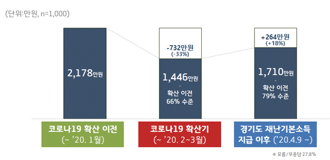 경기도는 지난 6일부터 8일까지 경기지역화폐 가맹점 1000곳을 대상으로 신종 코로나바이러스 감염증(이하 코로나19)에 따른 영향과 경기도 재난기본소득 효과에 대한 조사를 실시하고 14일 결과를 발표했다.