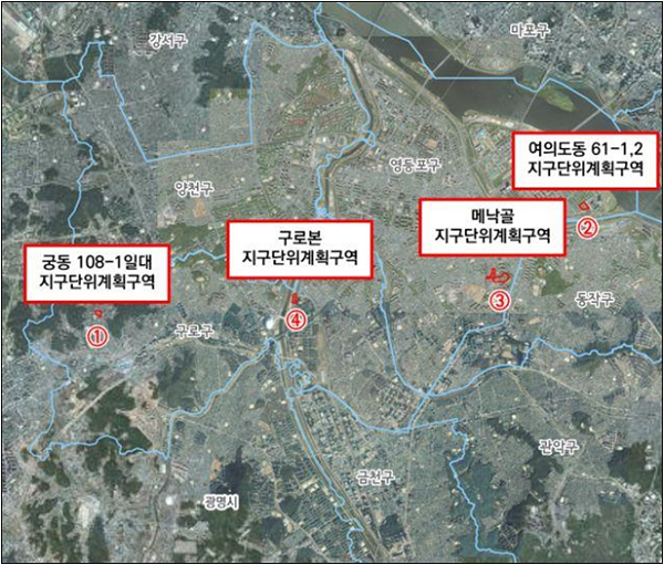 [아유경제_부동산] 서울시, 영등포구ㆍ구로구 일대 4곳 지구단위계획구역 ‘지정’
