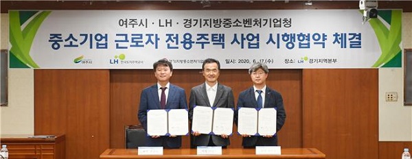 지난 18일 LH는 성남시 분당구 소재 LH 경기지역본부에서 여주시, 경기지방중소벤처기업청(이하 중기청)과 중소기업 근로자 전용주택 공급을 위한 업무협약을 체결했다고 밝혔다.