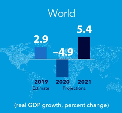 지난 24일(현지시간) IMF는 `2020년 6월 세계경제전망(World Economic Outlook)` 보고서를 발간하고 올해 세계 경제 성장률을 전망치를 -4.9%로 수정해 발표했다. 올해 초 발표했던 전망치보다 8.2%p 낮아진 수치다.