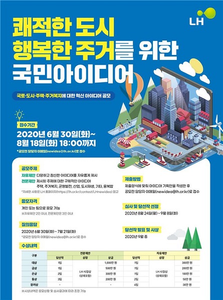 [아유경제=박휴선 기자] 한국토지주택공사(LH)가 국민 아이디어 공모전을 개최한다.