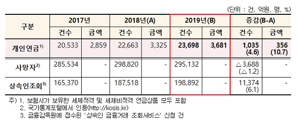 아울러 "이번 조치에 따른 미수령 개인연금 규모는 약 500억 원 정도로 추산된다. 보다 많은 상속인들이 잠자는 개인연금을 찾아갈 수 있도록 돕겠다"라고 전했다.
