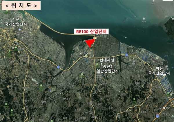 국내 최초로 RE100 산단이 조성되는 당진시 송산면 가곡리 541 일원 45만8900㎡(13만 8800평) 부지에는 약 150억 원(토지포함 조성비 550억 원)의 사업비가 투입된다. 준공은 2023년 12월 예정이다.
