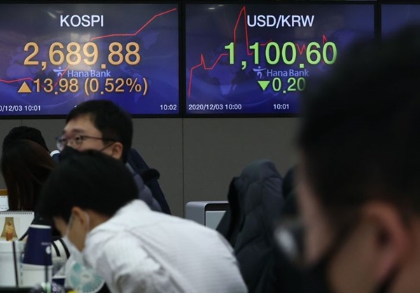 이를 두고 미국의 신종 코로나바이러스 감염증(이하 코로나19) 대응 재정 부양책 시행 기대로 위험자산 선호가 강화되며 달러 가치가 하락했다는 분석이 나온다. 코로나19 백신 사용 최초 승인 등으로 달러화 약세와 글로벌 위험 선호 흐름이 이어지며 환율 하방 압력으로 작용하고 있다.