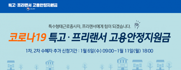 [아유경제=고상우 기자] 신종 코로나바이러스 감염증(이하 코로나19) 사태로 어려움을 겪는 특수고용직(이하 특고) 종사자와 프리랜서를 대상으로 하는 3차 긴급 고용안정지원금 신청이 6일부터 시작된다.