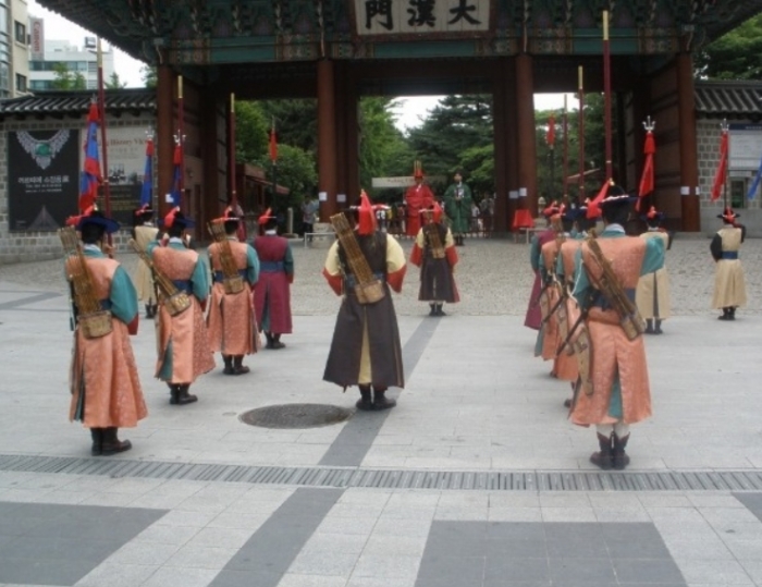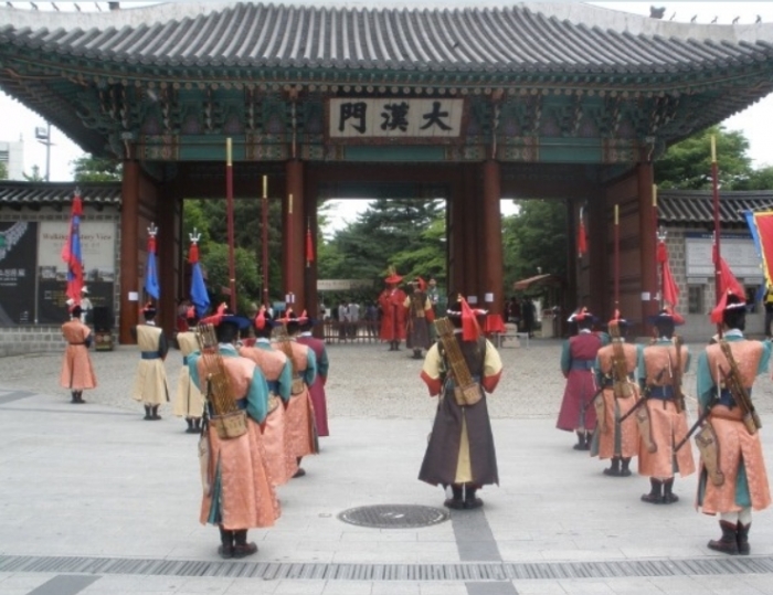 덕수궁 수문장 교대식은 세 번의 북소리를 통해 수문장 교대식을 알리는 ‘개식타고’로 시작되며, 암호(군호)를 내리는 의식으로 매일 세 글자 이내로 암호를 정해 국왕의 승낙을 받은 후 수문장 및 수문군에게 알려주는 절차인 ‘국호하부의식’이 진행된다.