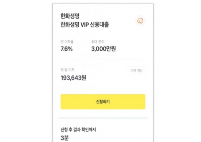 한화생명은 5일부터 자사 고객들이 카카오톡을 통해 신용대출 서비스를 받을 수 있도록 카카오페이와 업무협약을 맺었다고 밝혔다.
