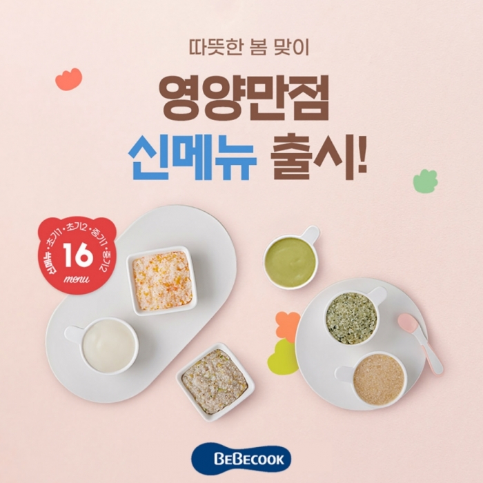 영유아식품 전문 브랜드 베베쿡이 따뜻한 봄을 맞아 아이들의 몸과 마음을 달래 줄 봄맞이 영양만점 이유식 신메뉴 16종을 출시했다고 9일 밝혔다.