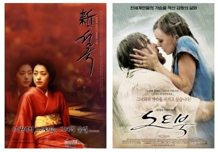 영화와 소설은 많이 다르기 때문일 것이다. 줄거리가 아무리 천박한 3류 냄새가 담겨 있어도 어떻게 표현 하느냐에 따라 아름다운 사랑이 됐다가 때론 천박한 불륜이 될 수도 있다. 곰곰이 생각해 보면 우리들 대부분의 삶이 바로 이런 3류 인생이 아닐까. 그래서 그런류의 외도를 아름답게 때로는 우아하게 표현한 영화와 소설이 사람들의 가슴에 와 닿는지도 모른다. 설국의 소설처럼 "야스나리"도 노년엔 쓸쓸한 최후(자살)를 맞는다. 영화 신설국은 중년 남성의 외도에 포커스가 맞춰져 있지만 다른 한편으로는 사업 실패에다 가정으로부터 버림받은 한 중년 남성(시바노 쿠니오)의 고뇌와 방황을 잡아주려는 게이샤의 따뜻한 온정도 느낄 수 있다. 사업에 실패해 자살을 앞둔 중년 남성을 끌어 안으려는 젊은 게이샤의 사랑이 불륜을 덮으며 아름답게(어떤 이들은 결코 아름답지 않다고 느낄 수도 있다) 묘사돼 있다. 아내는 신설국을 보고 있으면 '당신도 바람을 피우고 싶은 모양이네'하며 눈을 흘겼다. 그리고, '그런 천박한 영화를 왜 보느냐'고 덧붙인다. 외도(불륜)에만 포커스를 맞추고 있기 때문일게다. 아내 말대로 한편으론 신설국에 나오는 중년 남자 처럼 남자들은 누구나 한번쯤 외도를 하고 싶은 충동도 있을 것 같다. 어쩌면 신설국은 바람이 나고 싶은 중년 남자들에게 대리만족도 주었을 것 같다. 그러나 영화 [노트북]은 다른 각도에서 남녀간의 사랑을 묘사하고 있다. [노트북/닉 카사베츠 감독, 라이언 고슬링(노아), 레이첼 맥아담스(앨리) 주연]은 큰 재미는 없지만 빗나간 사랑이 아니라 건전한 사랑, 즉 교과서적인 사랑을 담고 있다.