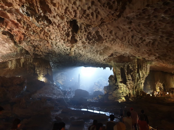 승솟(Sung Sot)이란 베트남어로 놀라운(surprise)이라는 뜻이다. 석회동굴이지만 종유석이 더이상 자라지 않는 죽은 석회동굴로 불린다. 하롱베이에는 승솟동굴 외에 동티엔쿵 동굴등 다양한 석회동굴이 있다. (출처:패션저널&텍스타일라이프 ⓒ www.okfashion.co.kr)