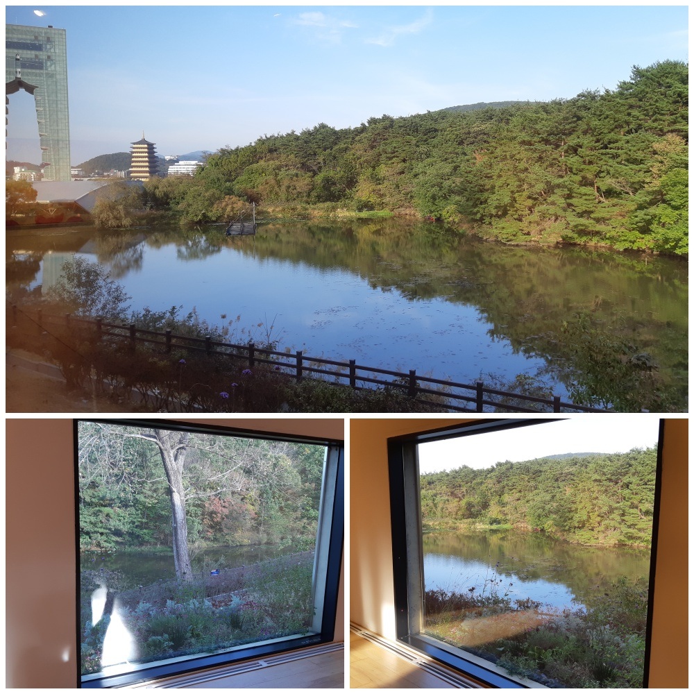 이 창문에 비춰지는 4계절 아평지의 풍경과 작품들이 어울려 일명 ‘움직이는 그림’의 배경이 된다.