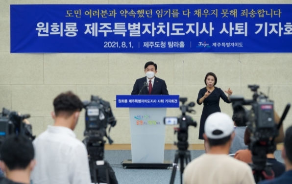 코로나19로 인한 위기가 계속 되는데 직을 내려놓게 되어 정말 죄송합니다. 훌륭하신 행정부지사를 중심으로, 방역위기를 잘 관리할 수 있는 시스템과 만반의 준비가 되어 있으므로 코로나 위기를 잘 극복할 수 있을 것입니다. 제주 미래를 위해 했던 일들은 다음 도정에서 도민들과 치열한 소통을 거쳐 더 발전시켜 나갈 수 있기를 소망합니다.