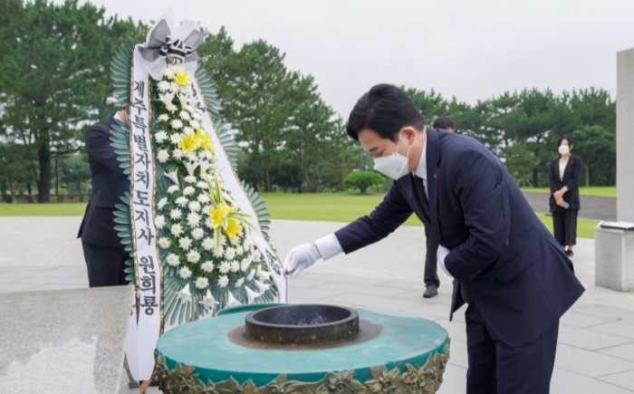 한편 원희룡 지사는 이날 오전 4·3평화 공원 방문 이후 강정커뮤니티센터를 찾고 이어 해양쓰레기 수거활동 및 보목 어촌·해녀 간담회를 가질 예정이다.