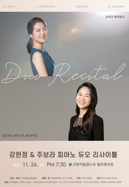 사회적 기업 툴뮤직은 11월 26일(금) 오후 7시 30분 고양어울림누리 별모래극장에서 피아니스트 강현정과 주보라의 피아노 듀오 리사이틀이 개최된다고 24일 밝혔다.