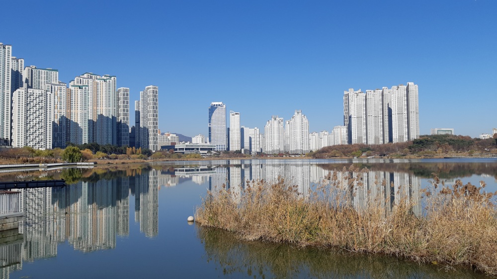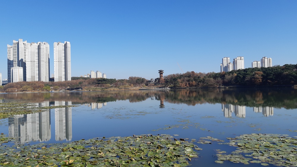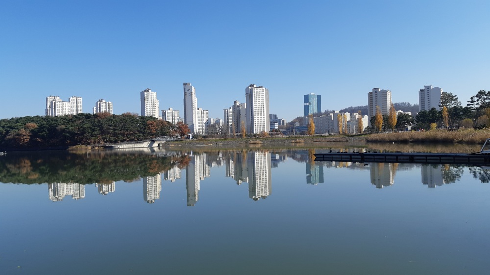 신대호수 보다 원천호수(옛 원천유원지) 주변에 아파트와 상가들이 더 밀집돼 있다.
