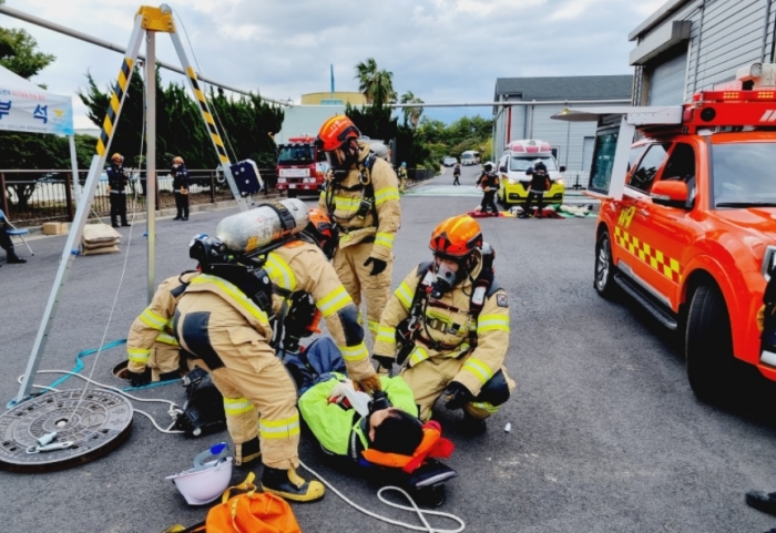 제주특별자치도 상하수도본부와 제주소방서가 23일 오전 9시 30분부터 제주하수처리장(제주시 도리로 254)에서 합동 위기대응 현장훈련을 실시했다.