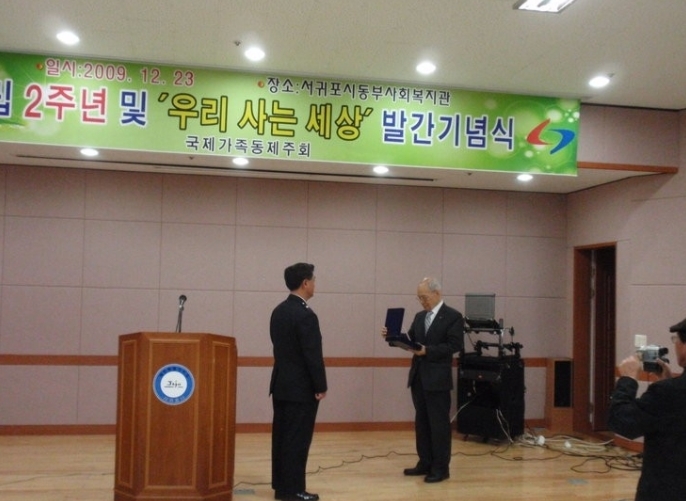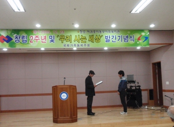 2009. 12. 23일 서귀포시동부종합사회복지관에서 국제가족동제주회(회장 오원종) 창립 2주년 및 '우리 사는 세상' 발간 기념식이 있었다.