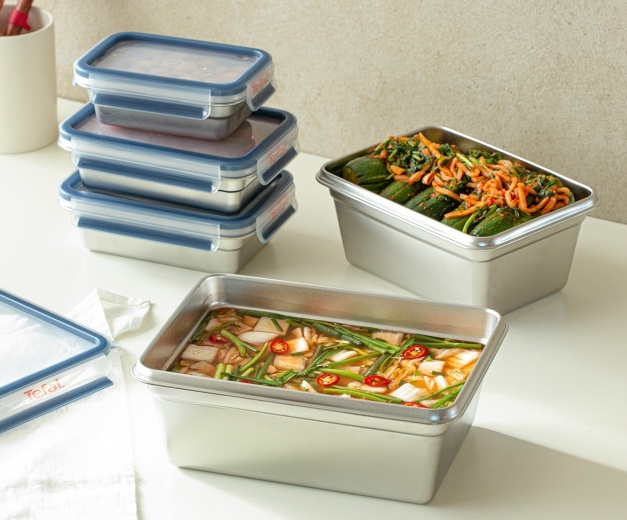 테팔 마스터씰 스테인리스 스틸 밀폐용기는 △직사각형 형태 5종(500mL, 800mL, 1.2L, 2L, 3L)과 △원형 형태 1종(700mL)으로 구성돼 필요에 따라 폭넓게 선택해 사용할 수 있다.