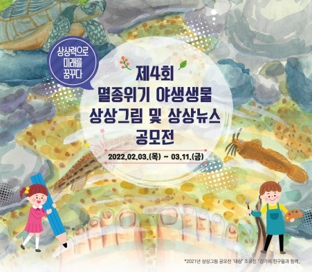 환경부 산하 국립생태원(원장 조도순)은 ‘제4회 멸종위기 야생생물 상상그림 및 상상뉴스 공모전(이하 공모전)’을 개최하고, 2월 3일부터 3월 11일까지 작품을 접수한다.