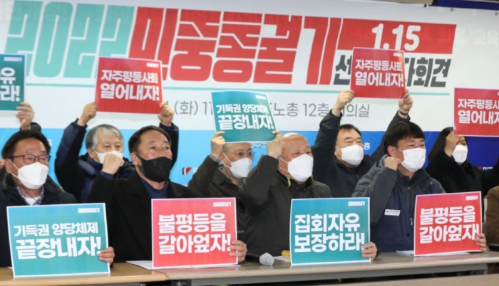경찰청 관계자는 " 현재 매일 수천 명의 확진자가 발생하고 있고, 오미크론 변이 바이러스가 빠르게 확산되고 있는 상황에서, 전국민중행동(민주노총 등)에서는 서울 도심에서 대규모 불법집회 강행을 예고하고 있다.”면서 “정부의 방역강화 비상조치(’21.12.18∼’22.1.16)가 시행중인 엄중한 시기에, 전국에서 상경한 다수의 집회 참가자들로 인해 코로나19 감염병의 전국단위 확산이 심각하게 우려된다.”며 “ 서울시·경찰의 집회금지에도 불구, 방역수칙을 위반하면서 불법집회를 강행할 경우, 법과 원칙에 따라 해산절차 진행 등 엄정하게 대응하고, 불법행위에 대해서는 수사전담팀을 편성하여 신속하고 엄정하게 수사하는 한편, 반복적인 불법행위를 주동하는 집행부에 대해서는 끝까지 추적하여 엄정 사법처리 할 방침”이라고 밝혔다.