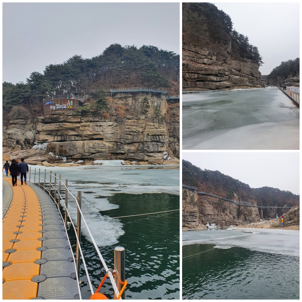 잔도(棧道)로 불리는 이 주상절리길은 주로 배수로 덮개로 쓰이는 스틸그레이팅(Steel grating)으로 제작돼 바닥이 훤히 내려다 보인다.