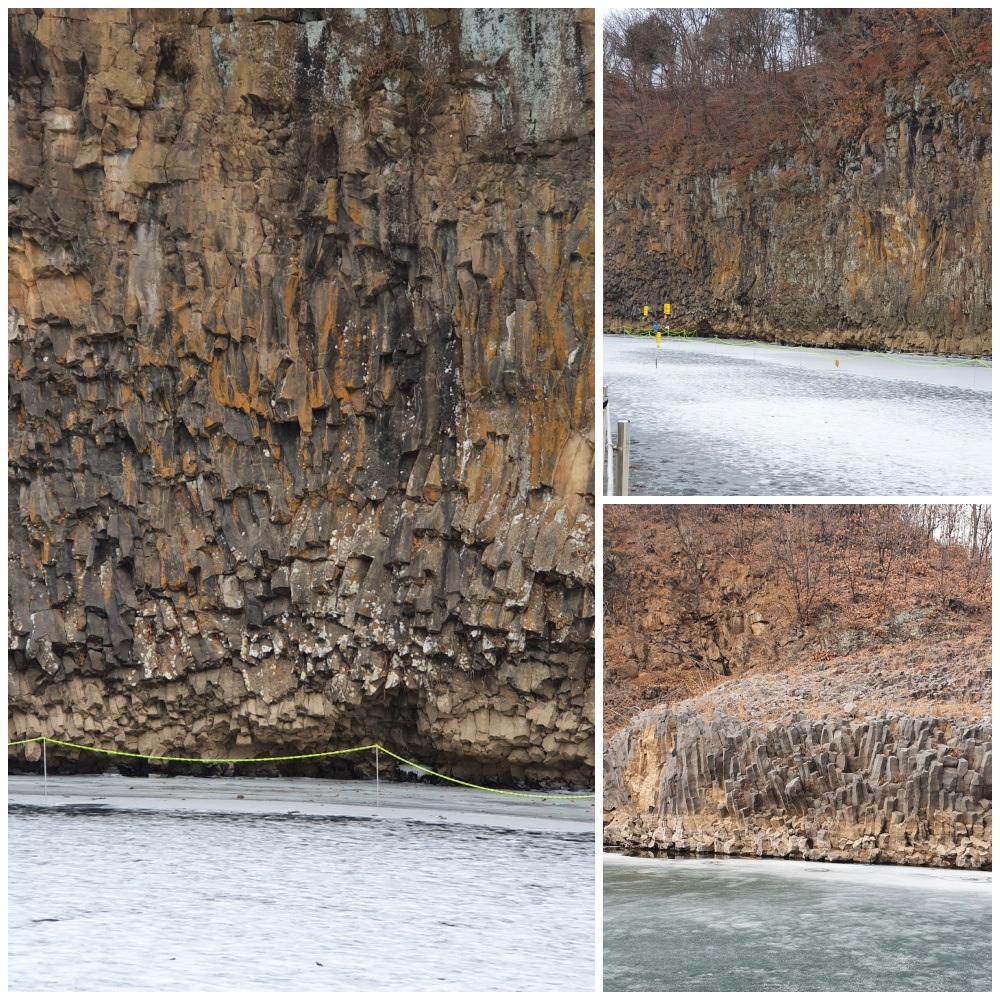 한탄강을 따라 현무암층(신생대 제4기 홍적세에 구조선을 따라 열하분출)이 기존 하곡 위를 흘러내려 형성된 용암대지가 있다.