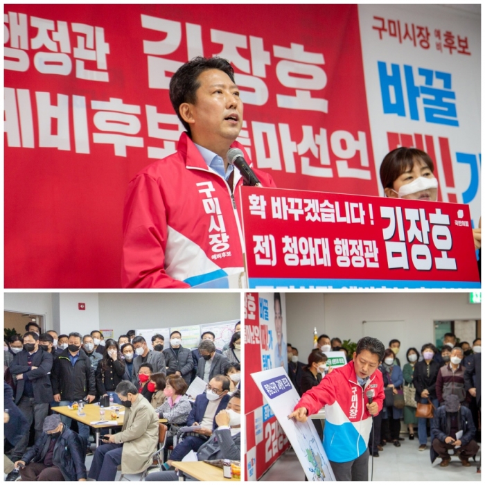 또 “위기의 구미를 희망의 구미로 만들기 위해 공직생활 7년을 남기고 출마를 결심했다."며 "구미시민이 키운 김장호가 경험과 전문성을 바탕으로 구미를 확 바꾸고 희망찬 미래를 만들어 나가겠다”고 역설했다.