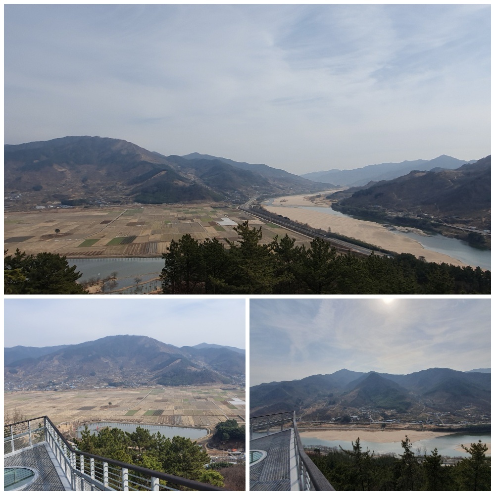 전망대에서 바라보면 하동 평사리(박경리 대하소설 '토지의 배경'이 된 마을) 들판의 넓고 아름다운 풍경과 섬진강이 한눈에 내려다 보인다.