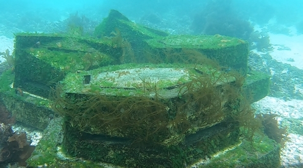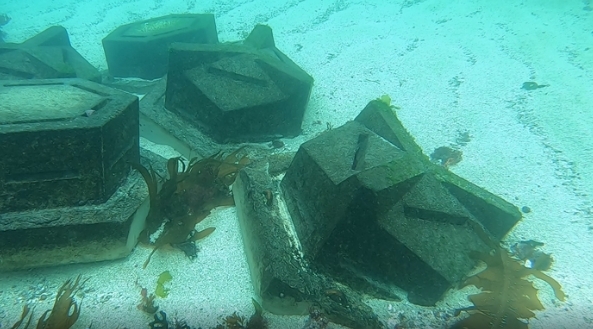 ○ 개발한 해조생육 블록의 효과성 실증시험을 위해 지난해 11월 구좌읍 평대리 마을어장(수심 5~6m)에 블록 33개를 투석하여 약 4개월간 수중 모니터링을 실시한 결과 시설물의 안정성, 소형 저서생물의 서식처 제공, 해조류 부착기질의 역할 등을 확인했다.