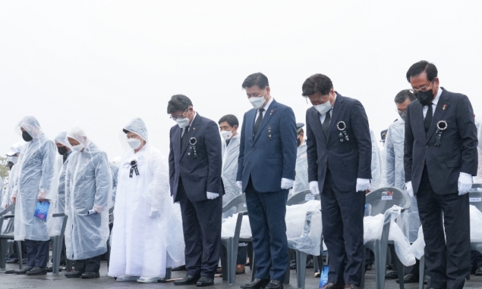 추념식에는 구만섭 제주특별자치도지사 권한대행, 오영훈 제주도지사 당선인, 좌남수 제주도의회 의장, 이석문 제주도교육감을 비롯해 도내 보훈단체장, 보훈가족, 기관단체장 등 500여 명이 참석했다.