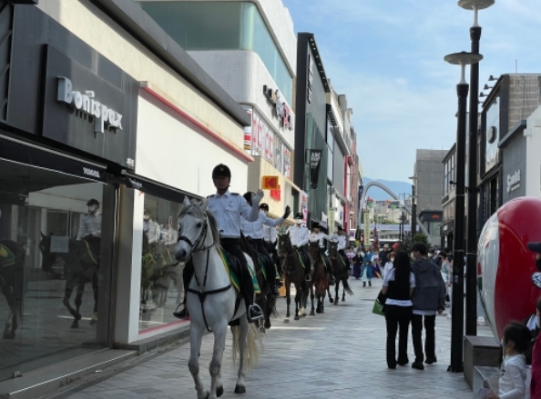 제주특별자치도 자치경찰단 기마대(단장 고창경)는 지난 15일 제주목 관아 수문장 교대의식과 연계해 기마 퍼레이드를 펼쳐 도민과 관광객의 호응을 얻었다고 밝혔다.