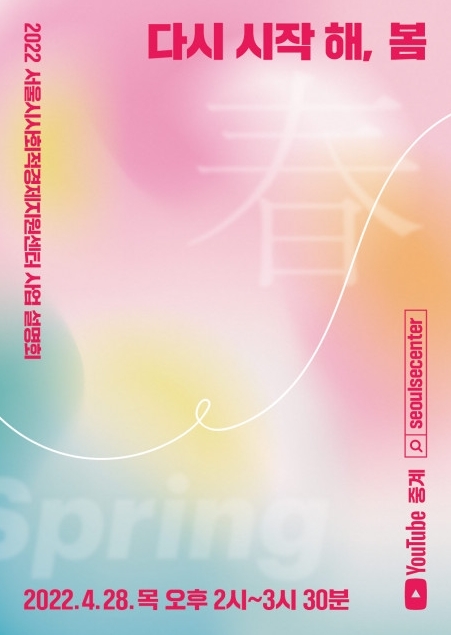 서울시사회적경제지원센터(이하 센터)가 28일 오후 2시 센터 유튜브 채널에서 2022 서울시사회적경제지원센터 사업 설명회 ‘다시 시작 해, 봄’을 진행한다고 밝혔다.