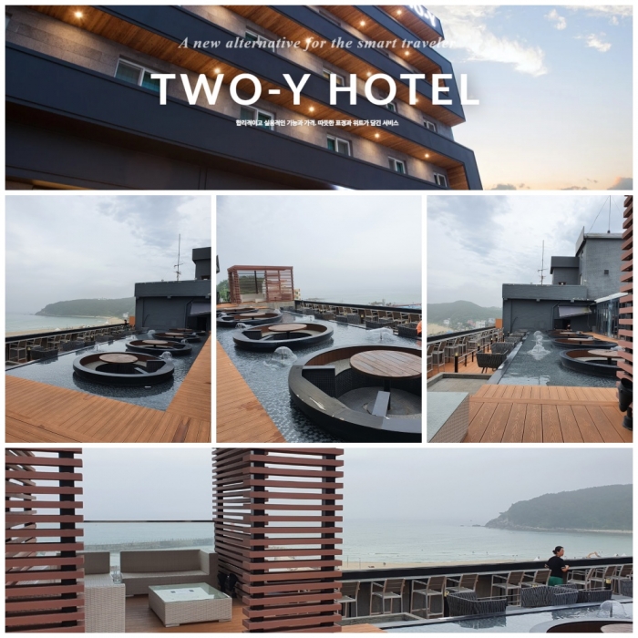 양양군 강현면에 소재한 투와이호텔(2성급)은 루프탑에 식당과 바다를 보며 차를 마실 수 있는 공간이 있다.