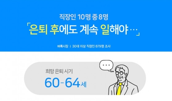 미디어윌그룹의 국민 일자리 앱 벼룩시장이 30대 이상 직장인 879명을 대상으로 정년퇴직 관련 설문조사를 실시했다고 7일 밝혔다.